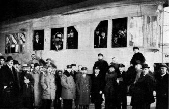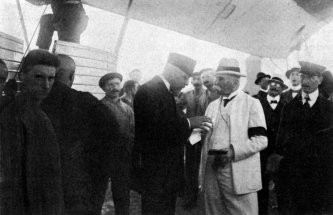 Count Zeppelin, Doctor Eckener and Capt. Strasser (Chief of Naval Air Service). On the occasion of the last visit of the Count to the Airship Harbor at Nordholz.