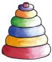 Давай поможем Осе собрать игрушки. Найди мячик. Где он? Посмотри на полу. Что там лежит? Мячик. Положи его на стол. (Взрослый объясняет, что мячик кладётся на стол сверху.) На полу остались пирамидка и кубик. Положи пирамидку на стол. Теперь — кубик. Он синего цвета, как небо.