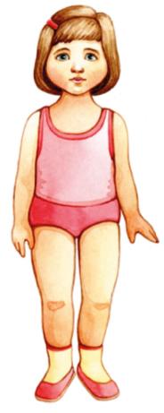 Логопед: Дай ручку — поздороваемся! Хлопни по моей руке. Молодец, сильная рука! (Для девочки: «Ласковая, мягкая ручка!») Я принесла для тебя машинку. Найди её. (Игрушка находится на видном месте.) Умница, нашёл! (Все действия ребёнка сопровождаются словами взрослого.) Проверь, ездит ли она. (Ребёнок и логопед катают машинку.) На ней приехала девочка Тата, чтобы познакомиться с тобой. (Из приложения к книге предварительно вырежьте картинки и наклейте их на картон.) Давай рассмотрим Тату. Как и у всех людей, у неё есть тельце: головка, шейка, животик, спинка, ручки и ножки. (Логопед показывает их на бумажной кукле.) Где у девочки ручки? Покажи. Она ими рисует, хлопает. Похлопай ручками и ты. Ножками Тата ходит, бегает, топает. Давай и мы с тобой потопаем. У девочки есть животик, спинка, грудка, шейка и головка — всё как у тебя. На голове у неё волосы и ушки. На личике — глазки, Тата ими смотрит. Бровки и щёчки. Носиком она дышит, а ротиком кушает, говорит и поёт.