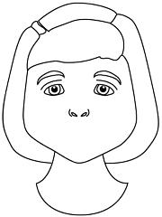 Красный цвет мы видим часто. Когда ты гуляешь на улице, твои щёчки становятся красными. Губы у людей всегда красные. Посмотри на картинку. (Картинка: лицо без рта.) Чего не хватает на лице? Носик, глазки, брови и щёчки — есть, а ротика — нет. Возьми красный карандаш и нарисуй ротик. Молодец! Нам с Татой нравится, как у тебя получилось. Что поёт девочка, когда радуется?
