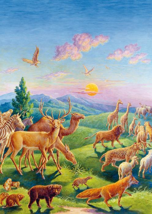 В шестой день Бог сотворил земных зверей – таких, которые не могут жить в воде и не могут летать. По слову Божьему появились звери каждого рода по паре, чтобы они могли размножаться.