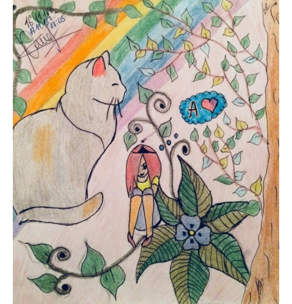 На одной из таких звезд ранним утром, когда только-только подкрадывались первые лучи озаряющего мир шара, цвела жизнь: множество лесов с причудливыми зверями и птицами, которых нигде нельзя более встретить, поля и луга, усеянные «маленькими солнышками» (ромашками), различные огромные деревья, имеющие вместо листьев рисунки с мечтами и настроениями юной девушки, реки — многоводные, но не глубокие, чтобы спокойно по ним шагать, чистейший воздух, исцеляющий любого, кто нуждается в помощи…