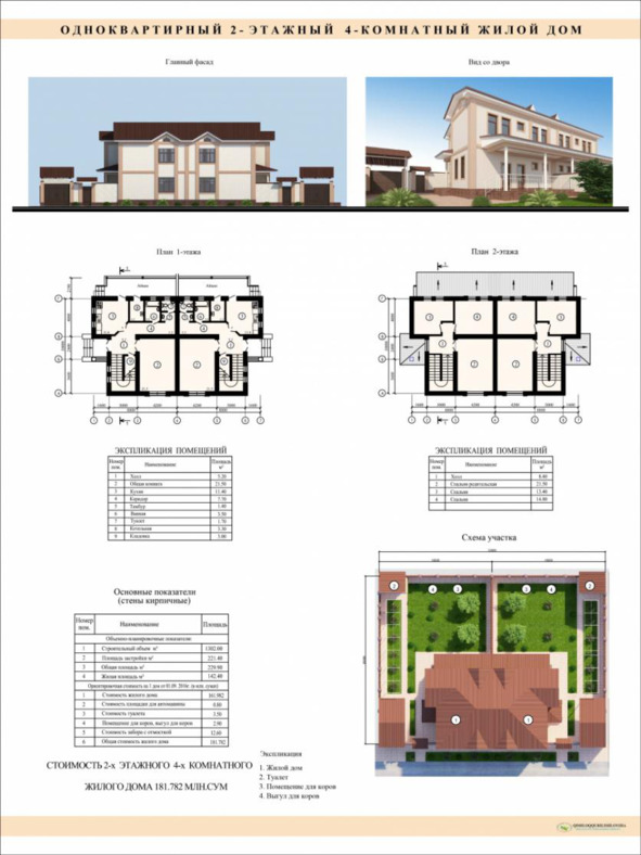 Бир квартирали 2-қаватли 4-хонали уйлар