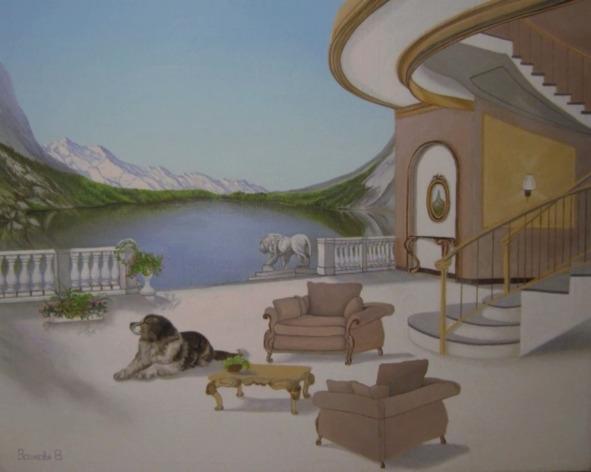 «Терраса на берегу альпийского озера» — это картинажелание. Она не о том, что есть, а о том, что могло бы быть: о тишине, нарушаемой лишь плеском воды, о прохладе горного воздуха, о чувстве полной защищённости и эстетического наслаждения от каждой детали вокруг. Волкова создаёт не просто пейзаж, а готовую декорацию для идеальной жизни — место, где мечта об отдыхе обретает зримые и невероятно притягательные формы.