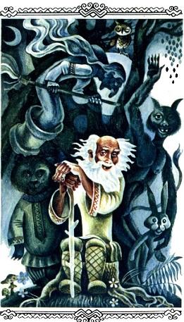 А баранчик услышал, как говорили старик со старухой и убежал в лес. Старик подумал — к чужой отаре пристал баранчик — и угнали его на ярмарку. Погоревал, да что толку? Был баранчик — сплыл баранчик.