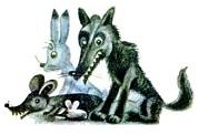 — Братец волк, — отвечают в один голос мышка, крыса и зайчик. — Сейчас небо на землю упадет и всех нас придавит. Уже один кусок отвалился…