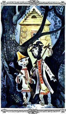 — Братец кот! Братец баран! Меня лиса обманула, за горы, за долы, за темный лес унесла.