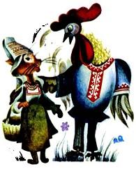 Влез петух на орешник, рвет орехи и вниз бросает. Сорвал большую ветку с орехами и бросил. Ветка угодила кошке прямо в глаз и вышибла его. Рассердилась она и говорит: