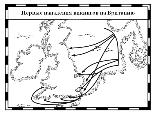 Викинги нападали на всю Северо-Западную Европу и однажды даже разграбили Пизу, так что не приходится удивляться разграблению Саутгемптона (840) или Лондона (842). Однако в 865 г. огромные силы викингов вторглись в Нортумбрию и Восточную Англию и убили местных королей. Мерсия пала частично. Англия больше не подвергалась грабительским рейдам — она была захвачена. После битвы при Чиппенхэме, выигранной викингами благодаря засаде, последний король англов Альфред Уэссекский вынужден был бежать.