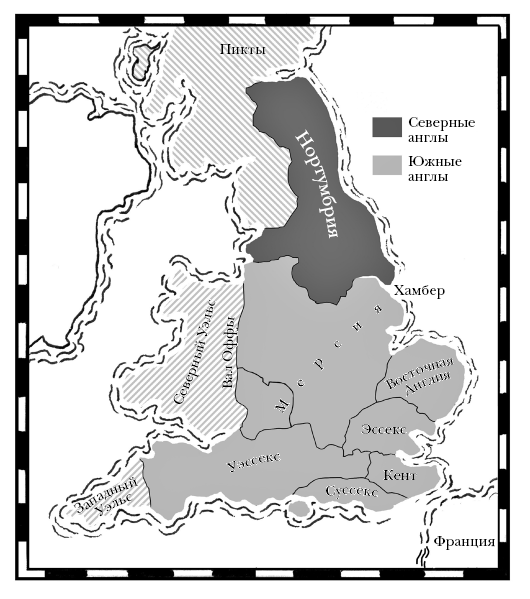 За два года до норманнского завоевания границы между англами и их соседями уже были практически такими же, как сейчас. Также была заметна и граница между Севером и Югом внутри самих английских племен. Беда, писавший около 731 г., упоминает реку Хамбер девять раз, и всякий раз в том контексте, что эстуарий Хамбера «отделяет северных англов от южных».