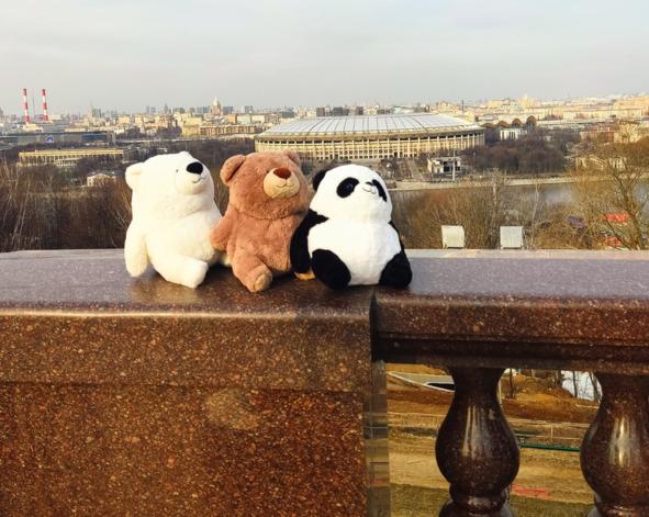 — So many questions. First, I can’t go home because our embassy in Russia is closed. I live here but I hate living in hotel even if it is the best one. That was second. And at last you may call me native American bear.
