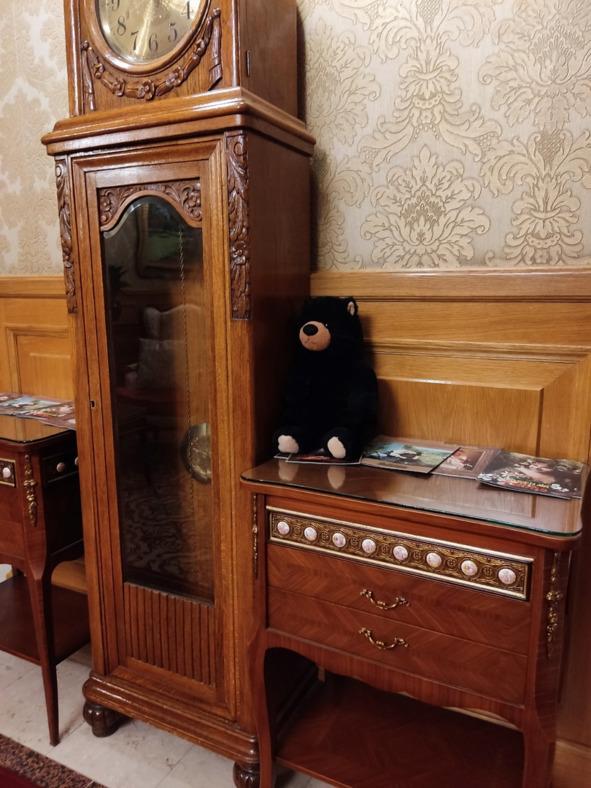 Надо сказать, что, раз попав внутрь Националя, вы становитесь его гостем, поэтому официанты вам вежливо кланяются и предлагают напитки, а швейцары открывают двери. В это время забили часы мелодичным боем, и Мишутка обернулся на звук. Рядом с часами сидел Черный мишка.
