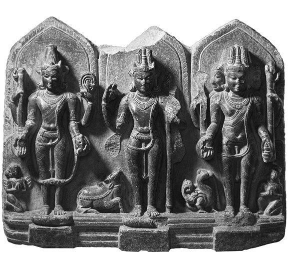 Индуистские боги Вишну, Шива и Брахма. X век.