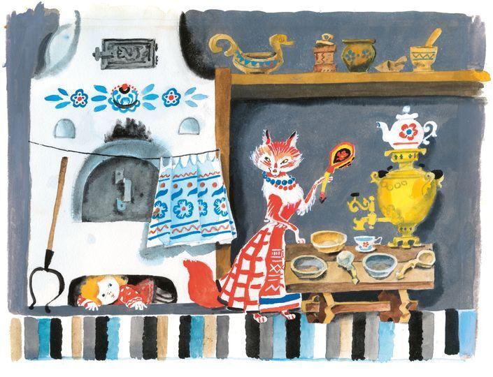 Вошла лиса в горницу, смотрит – нет Жихарки. Подошла она к столу, стала ложки считать: