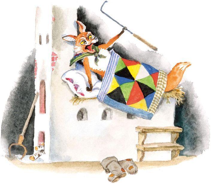 Подбежала лиса к печке, Жихарку ухватила, сунула в мешок да в лес.