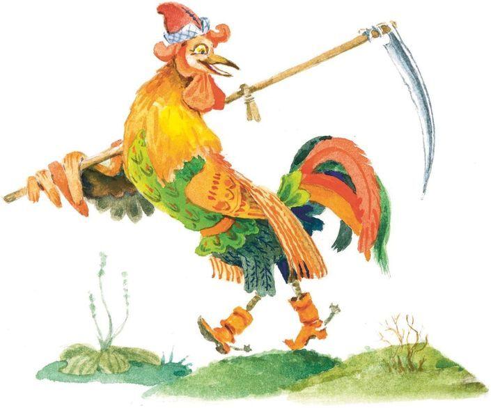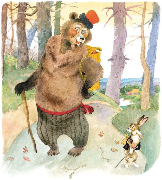 Испугался медведь да бежать. Опять идёт зайка и плачет. Вдруг навстречу ему петух. Увидел зайчика, подошёл и спрашивает:
