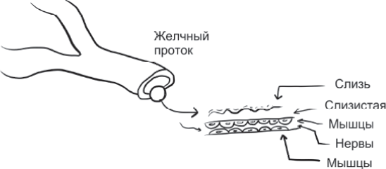Желчный проток внутри трубы покрыт слизистой оболочкой. Она нужна для того, чтобы желчь не разъедала и не раздражала сам проток. В случае воспаления желчного пузыря или протоков количество клеток, вырабатывающих слизь, становится больше, чем обычно. Так живой проток адаптируется и помогает справиться с избыточным раздражением. Иногда это играет злую шутку, когда выделяемой слизи становится слишком много и она, наоборот, затрудняет выделение желчи. Кроме того, клетки трубы помогают всасывать и впитывать лишнюю воду – так они помогают концентрировать желчь. Есть и другие хитрости в этой желчной трубке (например, способность уводить желчь обратно), но об этом чуть позже.