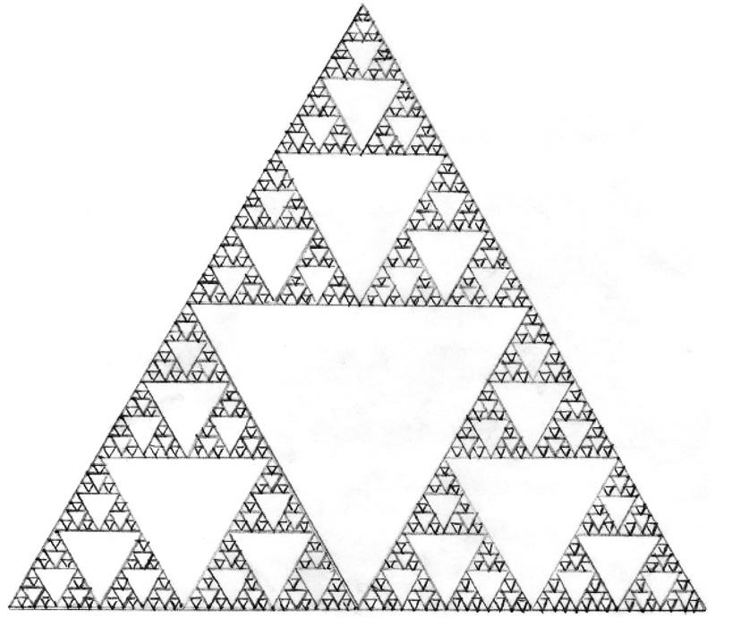 Фракталы (класс фигур, впервые описанных математиком Бенуа Мандельбротом) — фигуры, построенные из частей, среди которых каждая так или иначе подобна целому. Кусочек береговой линии, если его рассматривать вблизи, выглядит так же, как ее большой отрезок с большого расстояния; листочек папоротника выглядит как сам папоротник в миниатюре; двухметровая нить ДНК сворачивается внутри клеточного ядра диаметром примерно в одну миллионную часть ее длины, повторяя один и тот же способ сложения каждый раз в меньшем масштабе. Это фракталы, которые мы наблюдаем в природе. Простейшие фракталы — самоподобные фигуры вроде треугольника Серпинского.