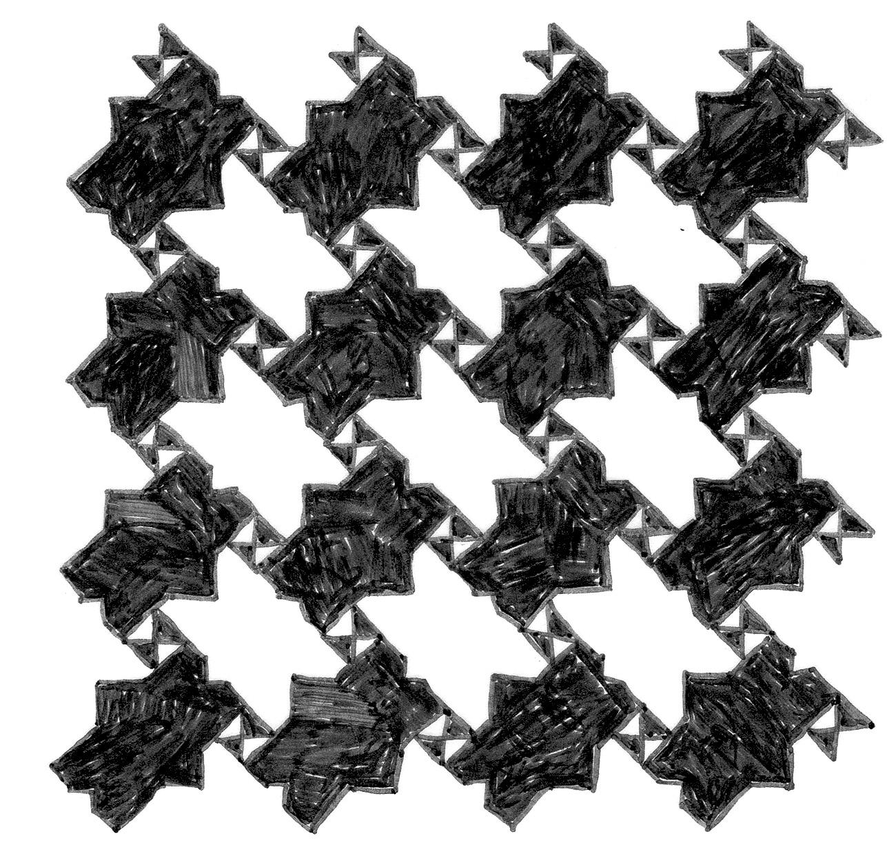 В книге Бранко Грюнбаума [6*] и Джоффри Шепарда [7*]«Плитки и паттерны» (этот семисотстраничный труд вполне заслуживает эпитета «всеобъемлющий») приводится огромное количество примеров не столько из области искусства, сколько из области математики [1]. Вообще существует семнадцать различных паттернов, обладающих красноречивым названием «группы орнамента». То, что таких паттернов всего семнадцать, было доказано в конце XIX века, но исламские художники знали об этих способах мощения за сотни лет до того, как русский кристаллограф и математик Евграф Фёдоров представил свое доказательство данного тезиса [2]. Иногда художники интуитивно делают открытия, которые математики проверяют и доказывают лишь многие годы спустя.