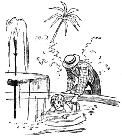 The gardener fished her out of the fountain twice in the week she was there. She was reaching for the goldfish with her fat little hands, and toppled in, head first. Phil began the week by getting a bee-sting on his lip, and a bite on the cheek from a parrot that he was teasing. As for Stuart, I think he had climbed every tree on the place before the first day was over, and torn his best clothes nearly off his back. The gardener had a sorry time of it while they stayed. He complained that "a herd of wild buffalo turned loose to rend and destroy" would not have done as much damage to his fruit and flowers as they. "Not as they means to do it, I don't think," he said. "But they're so chock-full of go that they fair runs away with their selves." The gardener's excitement did not long last, however.