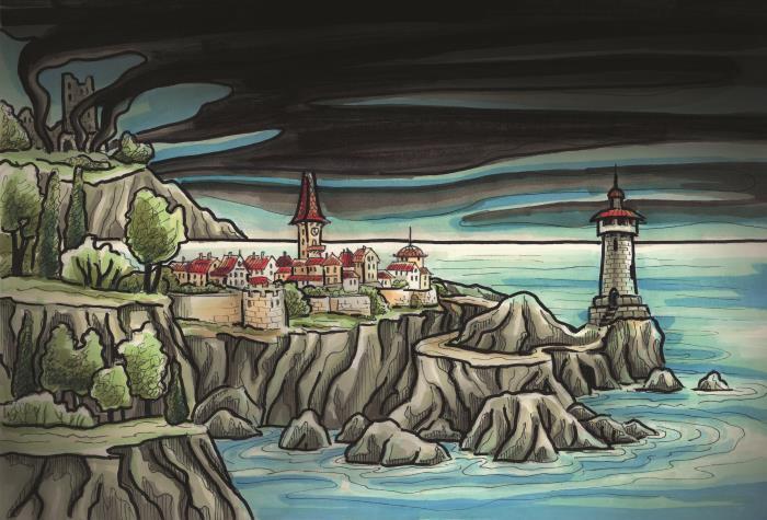 Взревел Океан. Налетевший вихрь хлёстко швырнул в лица путников колючим прибрежным песком. Чёрная Туча всколыхнулась, ощетинилась и едва не выхватила факел из рук Старого Фонарщика.