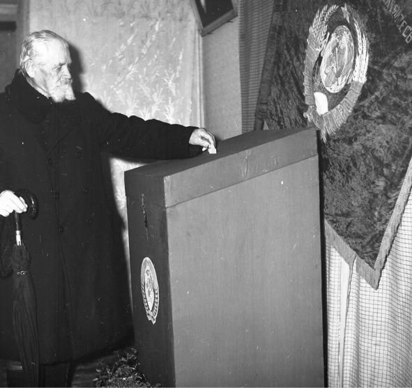 Наиболее ответственно к выборам в СССР подходили самые старшие поколения. Посёлок. 1967 год.