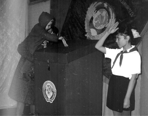 Когда же нам повязывали пионерские галстуки, наше участие в днях всенародных волеизъявлений становилось более полноценным. Пионеров, попарно, ставили к урне для бюллетеней — в почётный караул. Каждому избирателю, пришедшему отдать свой голос за «нерушимый блок коммунистов и беспартийных» мы, бодро вскидывая руки в пионерском приветствии, «отдавали честь».