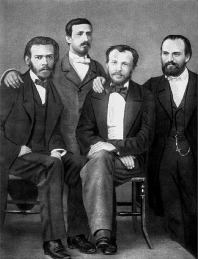 Н. Житинский, А. Бородин, Д. Менделеев и В. Левинский в Гейдельберге. 1860 г.
