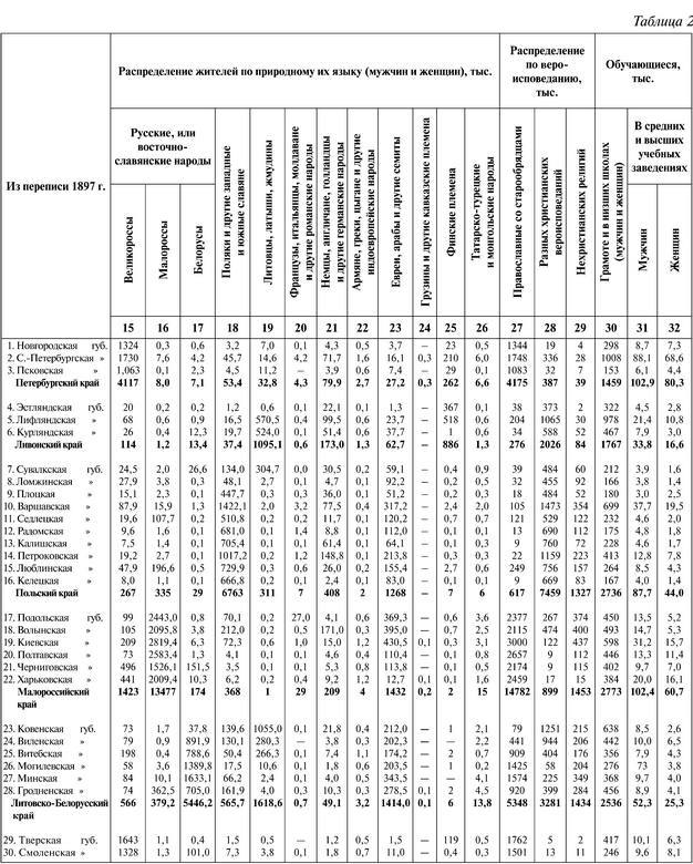 Для обозрительности и сравнимости данных разных переписей, эти последние данные лучше всего выразить так: