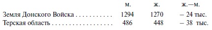 А там, где живут казаки, мужское население которых мало занимается сельским хозяйством, преобладают в числе лица мужского пола, например:
