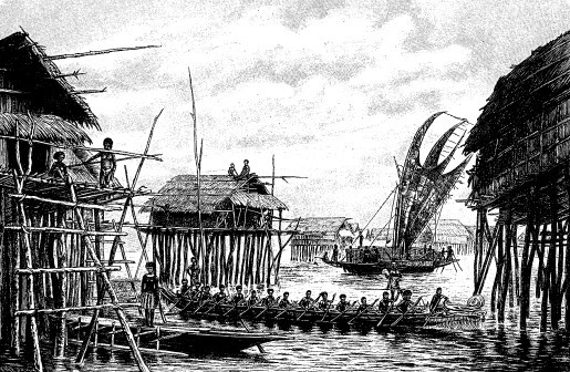 Деревня тагалов на острове Люсон (Филиппинские острова). Гравюра XIX в.