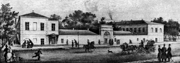 Гимназия при Ришельевском лицее в Одессе, где Д. И. Менделеев преподавал в 1855–1856 гг. Литография