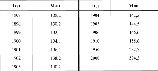 В конце XIX в. распространилась в Европе уверенность в том, что число жителей Китая никак не менее 360–370 млн. При распределении на провинции государственных уплат европейцам китайское правительство сочло население 18 внутренних провинций (без Маньчжурии, Монголии, Тибета и китайского Туркестана) равным 407 млн, а потому, считая в Маньчжурии 16 млн, в Тибете 6,5 млн, в Монголии 2,5 млн и в китайском Туркестане 1 1/5 млн, для всего Китая стали считать около 433,5 млн жителей. В 1903 г. китайское правительство известило, что, по сведениям, полученным из всех провинций, общее число жителей (конечно, уже без Формозы и других отпавших частей) всего Китая равно 426 337 тыс. Это число, мне кажется, и должно ныне, до точной переписи, считать наиболее близким к истине. Полагая годовой прирост (за вычетом эмиграции) очень ограниченным и равным только 0,5 % и считая указанное число отвечающим концу 1903 г. (все это уменьшает, вероятно, окончательную цифру жителей), получится к 1907 г. 426,34 + 4,26 = 430,6 млн. Округляя это число, получаем 430 млн, что и дано в табл. 2. Считаю полезным обратить внимание на то, что для всей Европы общее число жителей к 1907 г. вышло почти такое же: 431 млн, и что поверхность всей Китайской империи, близкая к 11 млн кв. км, тоже очень близка к поверхности всей Европы, равной 10 млн кв. км. При таком современном положении вещей нет ни малейшего основания Европе или Китаю думать о взаимном занятии или переселении в ту или иную сторону, и если с пробуждением Китая, да еще при участии в нем Японии, чего можно опасаться, то это набегов и отнятия от нас южных и приморских частей Восточной Сибири. Тут содержится один из наиболее жгучих и чисто русских вопросов предстоящего времени, и мне кажется, что Россия предупредительно-дружественной к Китаю политикою может успеть тут более, чем какими бы то ни было союзами не только с одною Францией, но и с Германией, Англией и С.-А. С. Штатами, если эти союзы будут иметь целью в чем-либо противодействовать китайским успехам в самостоятельности. Союз России с Китаем мне представляется если не наилучшею, то вернейшею и простейшею гарантиею мирного прогресса не только этих стран, но и всего света, тем более что все остальные государства мира имеют более поводов как для взаимного соперничества, так и для явного или тайного противодействия успехам всякого рода, а особенно промышленно-торговым, как России, так и Китая, видя в их многолюдстве и недостаточном развитии сил — прочных потребителей своих товаров и источники своих общих выгод. По моему мнению, наилучший, т. е. надежнейший, путь для достижения прочного мира и успешного внутреннего совершенствования как для России, так и для Китая состоит в образовании четверного союза с Францией и Англией, потому что с Россией и Китаем они обеспечат не только им, но и себе уверенность в возможности спокойно смотреть на будущее и вести дело к общему объединению мирных усилий всех стран света. Как бы то ни было, в Азии не только по преданию — колыбель людей, но и их численное преобладание, о ней и надо более всего заботиться, когда принципиальное равенство людей и стран ставится во главу общераспространенных идеалов.