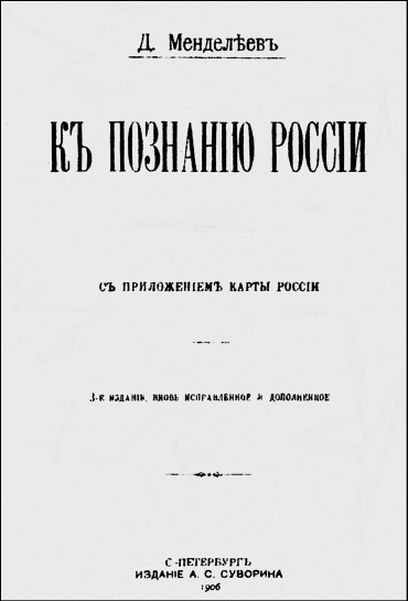 Даже человек, чьи профессиональные интересы далеки от химии, знает, что Дмитрий Иванович Менделеев открыл периодический закон химических элементов — один из основных законов естествознания. Таблица, составленная на основе этого закона, есть в каждом химическом кабинете средней школы, в каждом учебнике химии. Но к этому открытию не сводится роль Д. И. Менделеева в отечественной и мировой науке.