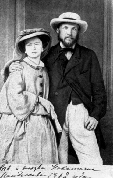 Д. И. Менделеев с женой Феозвой Никитичной (урожд. Лещевой). 1862 г.