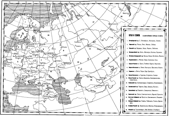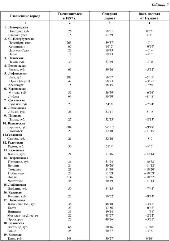 Все отдельные государства и их части распределены в прилагаемой табл. 2 по географическим странам света и по различию верховной в них власти, а потому некоторые государства встречаются неоднократно, что означено ссылками на соответственные номера таблицы. В каждой же из пяти частей света отдельные страны расположены в порядке числа их жителей, начиная с наиболее населенных стран. Здесь-то и оказывается особое значение таких крупных государственных единиц, каковы Россия, Китай, Англия, Франция и С.-А. С. Штаты, а также сравнительная незначительность общего числа современных независимых или отдельных стран и государств. В Океании все страны относятся к европейским государствам, и почти то же должно сказать про Африку, так как в ней независимых стран немного: Абиссиния, Марокко, Либерия и независимое Конго, и в них живет лишь седьмая часть всех обитателей Африки. Даже в Азии число самостоятельных государств незначительно в сравнении с тем, что имеется в Европе и Америке. Эти две части света, по этому самому, и должно считать истинными представителями Старого и Нового Света. Их когда-то очень явное и существенное различие за истекшее столетие почти сгладилось, и «принцип Монро», поджигающий это различие, мне кажется, должен скоро потерять всю свою силу, особенно ввиду одинаковости интересов Европы и Америки в деле того оживления Азии, которое начато Японией и должно особо ярко выступить в Китае. Если в противоположении Старого Света с Новым роль России была незначительна, то в предстоящем противопоставлении «Востока» с «Западом» она громадна, и я полагаю, что при умелом, совершенно сознательном, т. е. заранее обдуманном и доброжелательном — в обоих направлениях — участии России в этом противопоставлении должны выясниться многие внутренние и сложиться многие внешние наши отношения, особенно потому, что желаемые всеми прогресс и мир между Востоком и Западом не могут упрочиться помимо деятельного участия России. Путями для этого считаю не столько военную организацию, сколько: а) тесный союз с Китаем и Англией, б) рост у нас просвещения не в сторону политических (преимущественно латинских) бредней, а в сторону изучения реальной природы и людских обществ и в) всемерное развитие у нас всех видов промышленности, потому что они одни могут содействовать как обогащению и просвещению нашего народа, так и увеличению его внешнего влияния. Всякое здесь промедление может быть пагубным для судеб и наших и всемирных. Не по славянофильскому самообожанию, а по причине явного различия Востока от Запада и по географическому положению России, ее и Великий, или Тихий, океан должно считать границами, на которых должны сойтись всемирные интересы Востока и Запада. Желательно, чтобы и нашему отечеству придано было со временем название Великого или Тихого. Первое название Россия уже заслужила всею прошлою своею историею, а второе ей предстоит еще заработать. Но заметим, что Китай и Япония — только для нас и Западной Европы лежат на востоке, а для Америки и Великого океана ведь это — западные страны. Объединить всех людей в общую семью без коренных противоположений — составляет задачу будущего, и дай Бог, чтобы при решении этой задачи России пришли разумные мысли и достались хорошие роли.