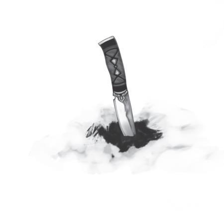 Вран втыкает все ножи в землю плотной линией остриями вверх. На самом деле Вран втыкает их не в землю, а в снег, но Вран считает, что сойдёт и так. Землю сейчас всё равно не пробить.