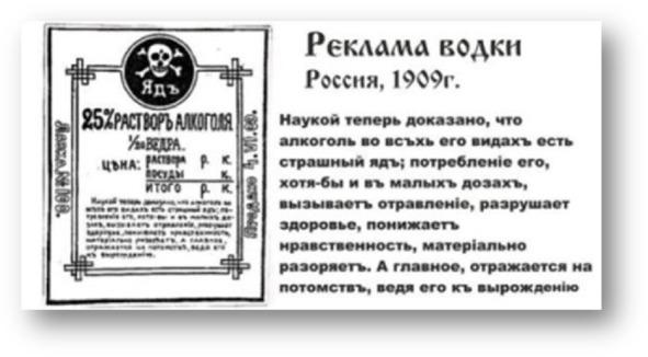 Я нашла в Интернете вот такую рекламу водки от 1909 года.