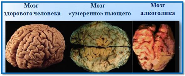 После всякой, пусть даже умеренной выпивки, кладбище погибших мозговых клеток пополняется. И когда врачи вскрывают черепную коробку любого, так называемого «умеренно пившего» человека, у каждого наблюдается одна и та же картина: сморщенный мозг, вся поверхность коры в микрорубцах, микроязвах, выпадах структур — это на языке хирургов, а языком нейробиологов — тени клеток. Это когда все клетки, разрушенные алкоголем, сливаются в канализацию, а в мозге остается пустота в форме клетки, заполненная серозной жидкостью. Когда же врачи вскрывают «конкретно пьющих», они удивляются не тому, насколько разрушен мозг, а уже тому, каким образом человек продолжал еще жить.