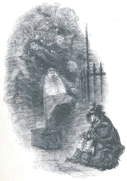 The Ghost was greatly pleased to find him in this mood, and looked upon him with such favour, that he begged like a boy to be allowed to stay until the guests departed. But this the Spirit said could not be done.