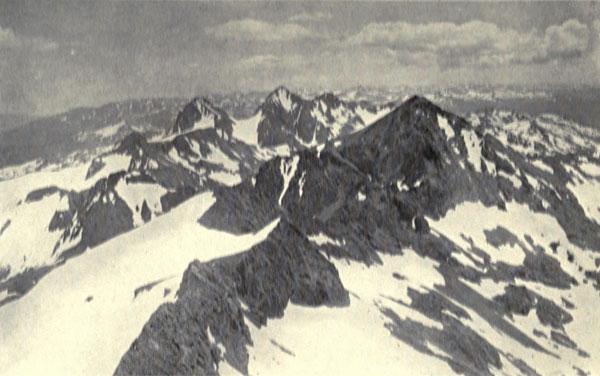 Along the Crest of the High Sierras from the Summit of Mt. Lyell (13,090 feet).