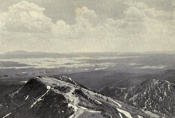 Tracing the silky lawns, gradually ascending, gazing at the sublime scenery more and more openly unfolded, noting the avalanche gaps in the upper forests, lingering over beds of blue gentians and purple-flowered bryanthus and cassiope, and dwarf willows an inch high in close-felted gray carpets, brightened here and there with kalmia and soft creeping mats of vaccinium sprinkled with pink bells that seem to have been showered down from the sky like hail,-thus beguiled and enchanted, you reach the base of the mountain wholly unconscious of the miles you have walked. And so on to the summit. For all the way up the long red slate slopes, that in the distance seemed barren, you find little garden beds and tufts of dwarf phlox, ivesia, and blue arctic daisies that go straight to your heart, blessed fellow mountaineers kept safe and warm by a thousand miracles. You are now more than thirteen thousand feet above the sea, and to the north and south you behold a sublime wilderness of mountains in glorious array, their snowy summits towering together in crowded, bewildering abundance, shoulder to shoulder, peak beyond peak. To the east lies the Great Basin, barren-looking and silent, apparently a land of pure desolation, rich only in beautiful light. Mono Lake, fourteen miles long, is outspread below you at a depth of nearly seven thousand feet, its shores of volcanic ashes and sand, treeless and sunburned; a group of volcanic cones, with well-formed, unwasted craters rises to the south of the lake; while up from its eastern shore innumerable mountains with soft flowing outlines extend range beyond range, gray, and pale purple, and blue,-the farthest gradually fading on the flowing horizon. Westward you look down and over the countless moraines, glacier meadows, and grand sea of domes and rock waves of the upper Tuolumne basin, the Cathedral and Hoffman mountains with their wavering lines and zones of forest, the wonderful region to the north of the Tuolumne Cañon, and across the dark belt of silver firs to the pale mountains of the coast.