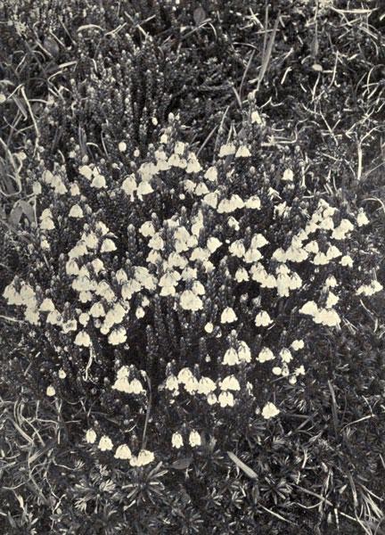 The dwarfed pine or white-barked pine (Pinus albicaulis) is sure to interest every observer on account of its curious low matted habit, and the great height on the snowy mountains at which it bravely grows. It forms the extreme edge of the timber-line on both flanks of the summit mountains-if so lowly a tree can be called timber-at an elevation of ten to twelve thousand feet above the level of the sea. Where it is first met on the lower limit of its range it may be thirty or forty feet high, but farther up the rocky wind-swept slopes, where the snow lies deep and heavy for six months of the year, it makes shaggy clumps and beds, crinkled and pressed flat, over which you can easily walk. Nevertheless in this crushed, down-pressed, felted condition it clings hardily to life, puts forth fresh leaves every spring on the ends of its tasseled branchlets, blooms bravely in the lashing blasts with abundance of gay red and purple flowers, matures its seeds in the short summers, and often outlives the favored giants of the sun lands far below. One of the trees that I examined was only about three feet high, with a stem six inches in diameter at the ground, and branches that spread out horizontally as if they had grown up against a ceiling; yet it was four hundred and twenty-six years old, and one of its supple branchlets, about an eighth of an inch in diameter inside the bark, was seventy-five years old, and so tough that I tied it into knots. At the age of this dwarf many of the sugar and yellow pines and sequoias are seven feet in diameter and over two hundred feet high.