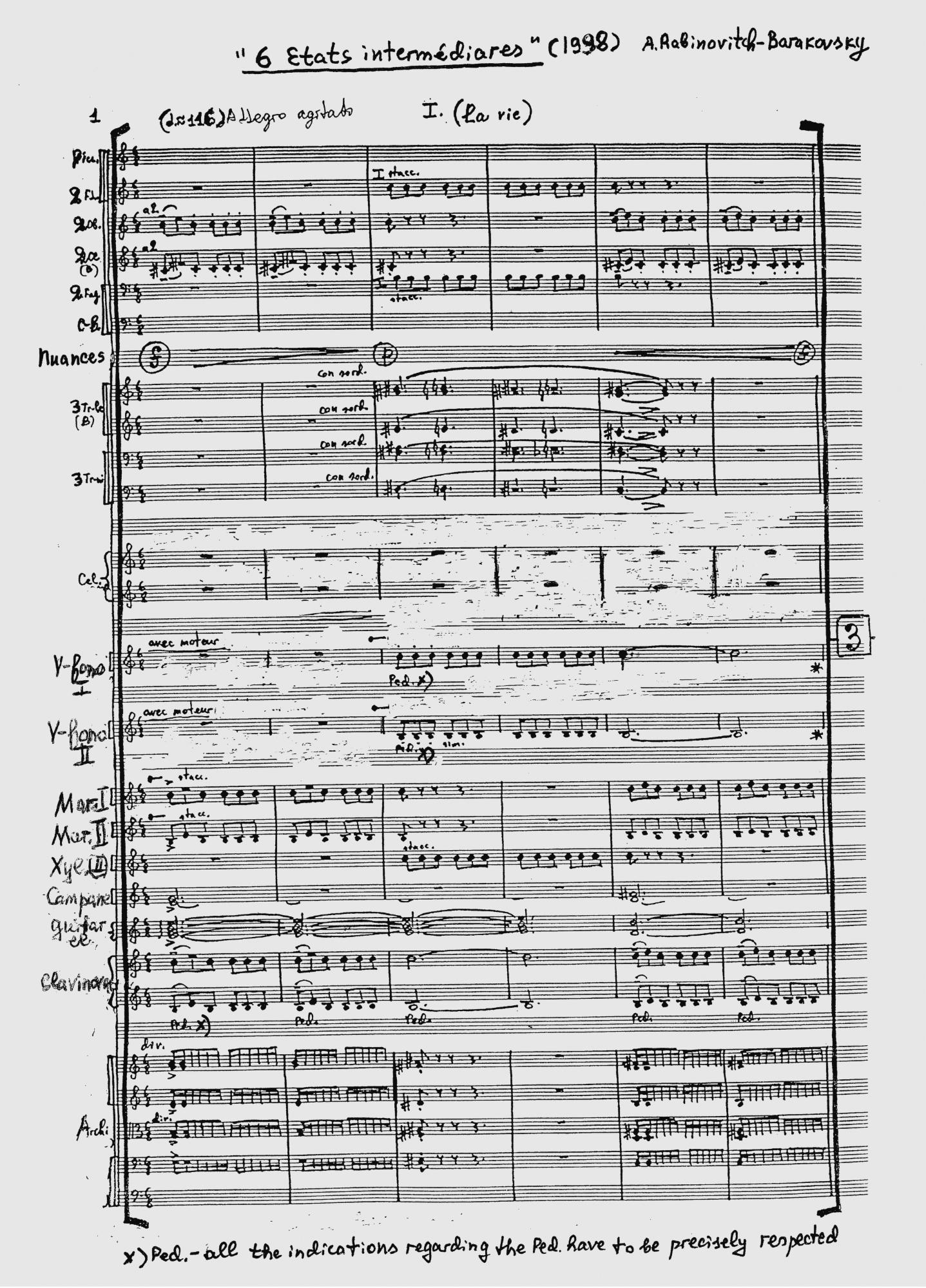 Фрагмент партитуры симфонии «Six etats intermédiaires» (1998).
