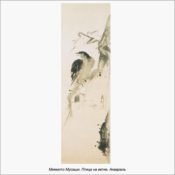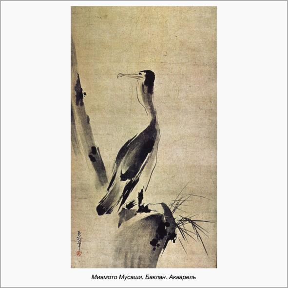 До нас дошли несколько подлинных акварелек, принадлежащих кисти Миямото Мусаши. Сохранились детали его оружия, изготовленные его собственными руками, и написанные им книги. Он был талантливым воином, художником, писателем, учителем и стратегом. Доказательство тому — его неизменный успех в сабельном бою, его заслуженная биография учителя фехтования, его работа консультантом по стратегии во дворце императора в последние годы его жизни.