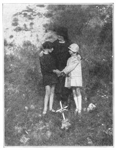 Grandmother arose. The two little girls followed her to the white dotted graveyard. They knelt before one of the white slabs. Jeanne saw her own father's name in letters before her. She tried to pray and to keep her eyes on those words, "Paul Villard." But the letters ran together.