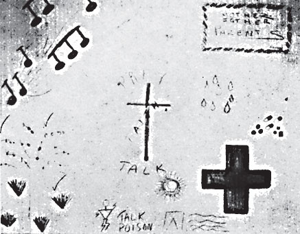 Последний рисунок Арама был посвящен тому, что поддерживает его в данный момент в жизни (рисунок 2), хотя он также в какой-то мере передает травматичный опыт. На этом рисунке клиент изобразил себя в центре в виде креста и, вместо того чтобы написать pray(что значит «молитва»), написал над крестом prey(что значит «добыча, жертва»). Справа он нарисовал зеленый крест, символизирующий людей, помогавших ему в этой стране. На меня эта работа произвела благоприятное впечатление, поскольку она, как мне показалось, отражала оптимистическое завершение психотерапевтического процесса, однако на последней сессии Арам заявил, что хочет уничтожить все созданные им работы, поскольку они навевают ему неприятные воспоминания, от которых он хотел бы освободиться. Эти намерения Арама меня смутили, и я предложила ему подумать о том, нельзя ли иначе поступить с его рисунками. Однако в конце концов я с ним согласилась и разрешила ему разорвать все его работы за исключением последнего рисунка. Я попросила его немного подождать, чтобы я могла этот рисунок сфотографировать. Он разрешил мне сделать снимок, но заявил, что хочет, чтобы я после этого уничтожила его работу. Я сфотографировала его последний рисунок, но сделала вид, что «забыла» его порвать. Спустя шесть месяцев Арам позвонил мне и сообщил, что ему предоставили статус политического беженца. Поздравив его, я спросила, что мне следует сделать с его рисунком, в надежде, что он изменил свое решение, – мне показалось, что теперь он должен воспринимать жизнь в более радужном свете. Однако Арам подтвердил, что работу следует уничтожить, поскольку она ассоциируется у него с болью, и он больше никогда не хотел бы ее видеть. Я неохотно согласилась с его просьбой и порвала работу.