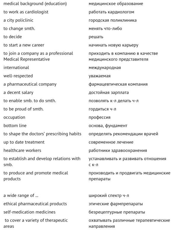 1. Каждое новое слово/словосочетание по учебной теме должно быть выписано на двустороннюю карточку и выучено в ходе самостоятельной работы. Заучивание может быть основано как на просмотре карточек, так и на слух — с опорой на аудиозапись новых слов. Также рекомендуется обязательно использовать для работы с новыми словами программу Quizlet/PharmEnglish (пароль для работы с программой следует письменно запросить у автора по указанному на последней стр. книги);