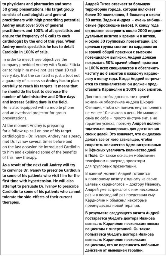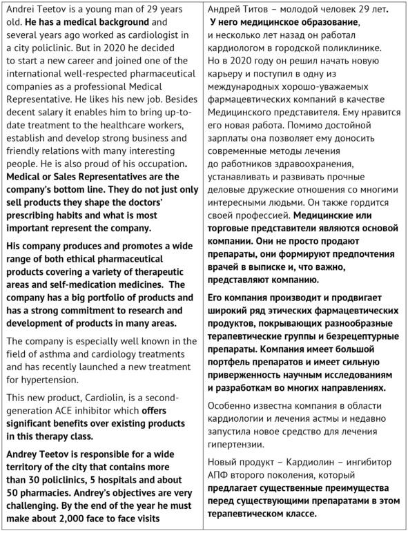 Данное специализированное пособие предназначено для менеджеров отделов продаж и маркетинга фармацевтических компаний, которым приходится взаимодействовать с англоязычными сотрудниками в ходе своей повседневной деятельности: бизнес-ревью, тренингов, презентаций, вебинаров и т. д. Пособие рассчитано на обучаемых, имеющих предварительные знания и навыки разговорной речи на уровне — не ниже Elementary.