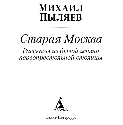 Старая Москва : Рассказы из былой жизни первопрестольной столицы / Михаил Пыляев. — СПб. : Азбука, Азбука-Аттикус, 2022. — (Азбука-классика. Non-Fiction).